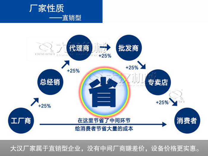 大漢廠家屬于直銷型企業(yè),研發(fā)、生產(chǎn)、銷售、維修等一系列流程都是由廠家獨(dú)立承擔(dān),沒有中間廠商賺差價,因此設(shè)備價格都更加真實(shí)、公開、公正,不會有欺騙用戶現(xiàn)象出現(xiàn)。