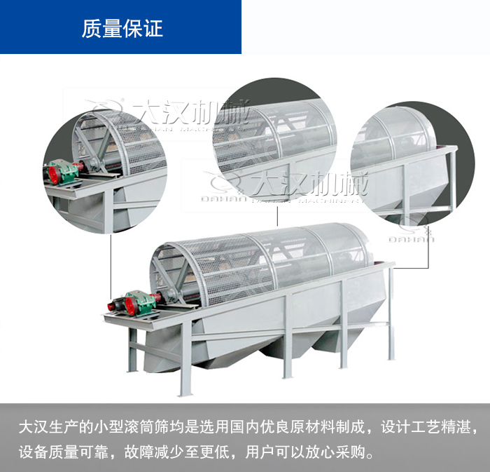 小型滾筒篩多少錢?大漢公司為您報價,大漢滾筒篩新價格:8000元—54000元。購買小型滾筒篩哪里實(shí)惠,還是建議您來新鄉(xiāng)大漢,主要原因如下: