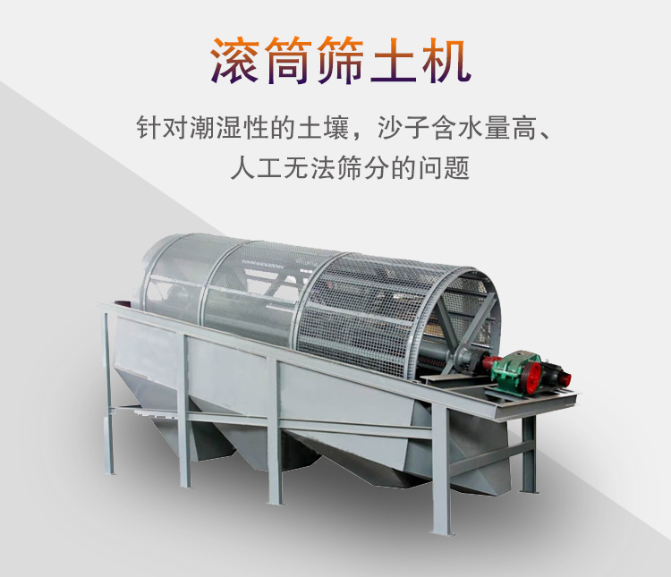 滾筒篩土機是大漢公司研制的一種用于篩分土料的設備,主要應用于煤場、河道、水庫等場合,滾筒篩土機篩體呈傾斜安裝,由于其采用了攪拌機攪拌原理,物料在篩筒內翻轉,針對潮濕性的土壤,滾筒篩土機也可篩選,并且篩孔不容易堵塞,解決了因土壤、沙子含水量高、人工無法篩分的問題,減少了物料的浪費。大漢滾筒篩土機為了方便用戶移動,還可在底部加裝輪胎,移動更加靈活。