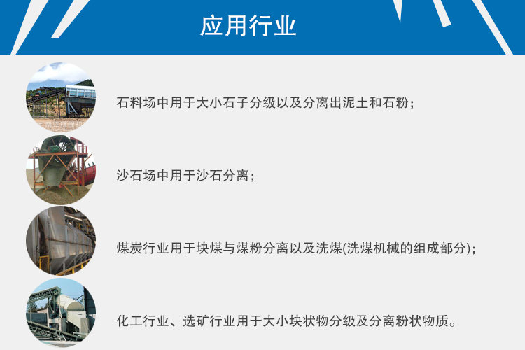 煤炭行業(yè)用于塊煤與煤粉分離以及洗煤(洗煤機械的組成部分);