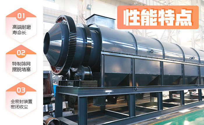 2、由于物料在滾筒內(nèi)不停地翻轉(zhuǎn)、滾動,使得卡在篩孔中的物料彈出,進而可以防止篩孔堵塞。