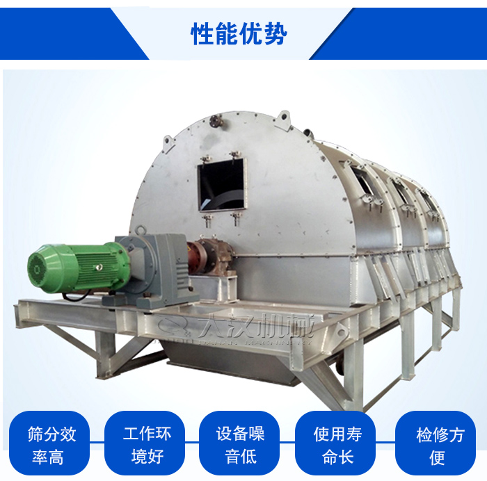 設(shè)備在運(yùn)行中,物料與旋轉(zhuǎn)篩網(wǎng)所產(chǎn)生的噪音完全由密封防塵罩隔離,使噪音無法傳遞到設(shè)備外部,從而降低了設(shè)備噪音。